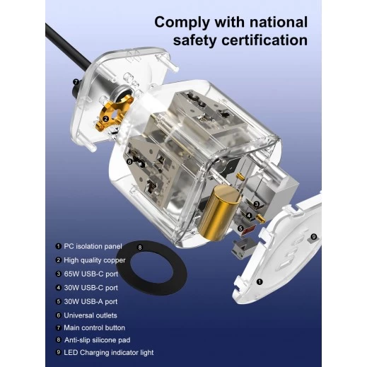 • 🔌 Outlets: 3 AC Sockets + 3 USB Ports