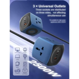 Upgrade your charging setup with the LDNIO 6-in-1 Power Socket Cube – the perfect all-in-one power solution for your home, office, or travel needs!