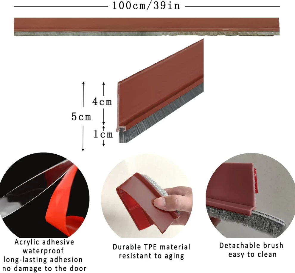 • ✅ 1x 39” Door Draft Stopper with Brush (Brown)