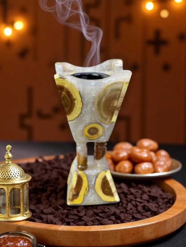 Elevate your space with this compact yet eye-catching 20cm luxury resin mabkhara. Handcrafted with intricate natural-stone patterns, it's perfect for enjoying the aroma of bakhoor, oud, or incense in style.