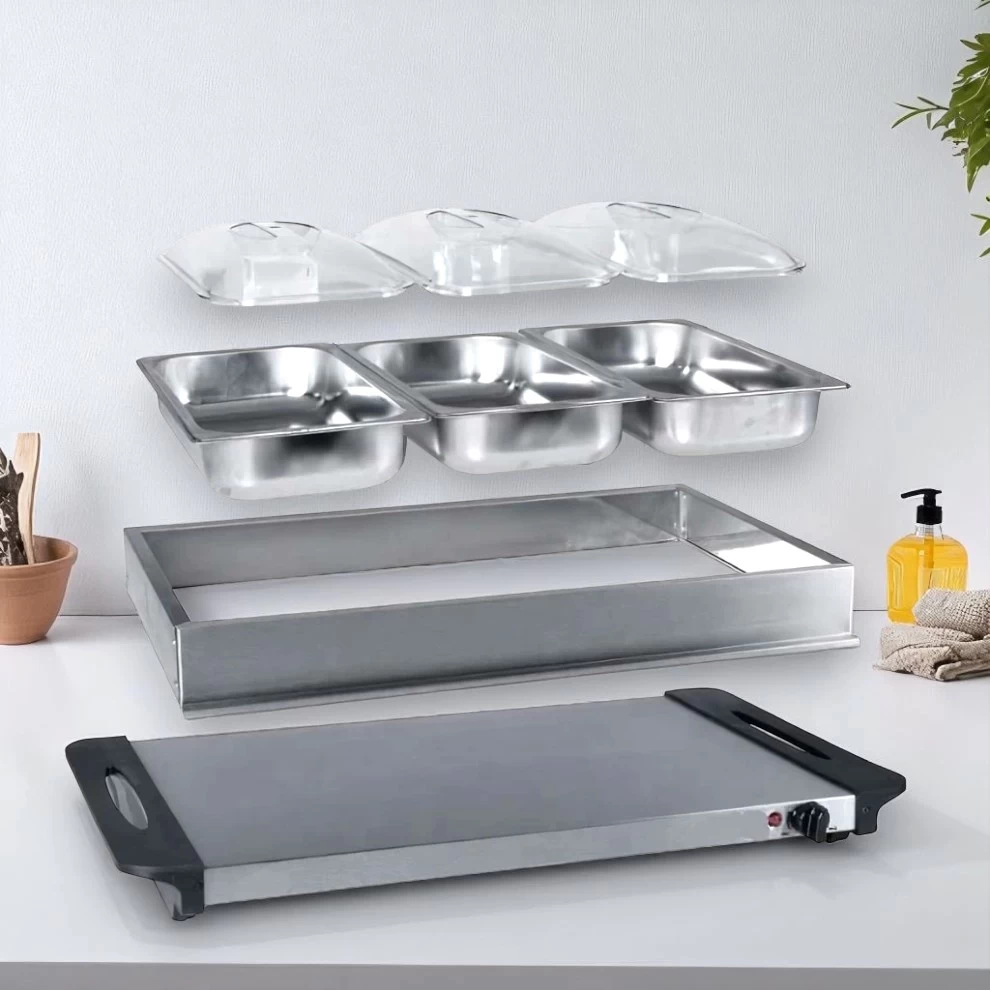 🍽️ Sumo 2-in-1 Buffet Food Warmer Tray – 3 Sections – 300W