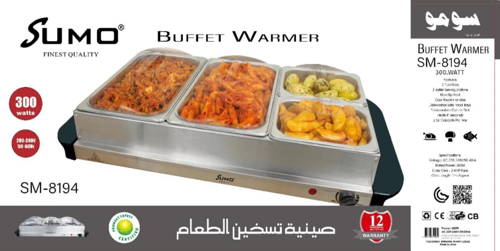 Keep your dishes warm and ready to serve with the Sumo Mini Buffet Warmer – the perfect solution for parties, family meals, and casual gatherings. With 3 stainless steel compartments and a compact design, it functions both as a warming tray and buffet server. Whether you’re hosting guests or just want to keep dinner hot, this device delivers convenience, style, and consistent heat.