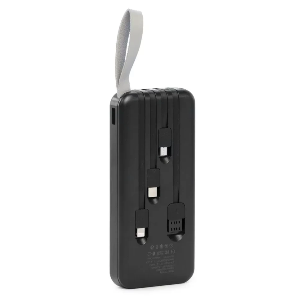 All-in-one portable charging solution with built-in cables for Lightning, Type-C, and Micro USB – ideal for daily use and travel.