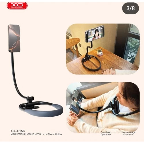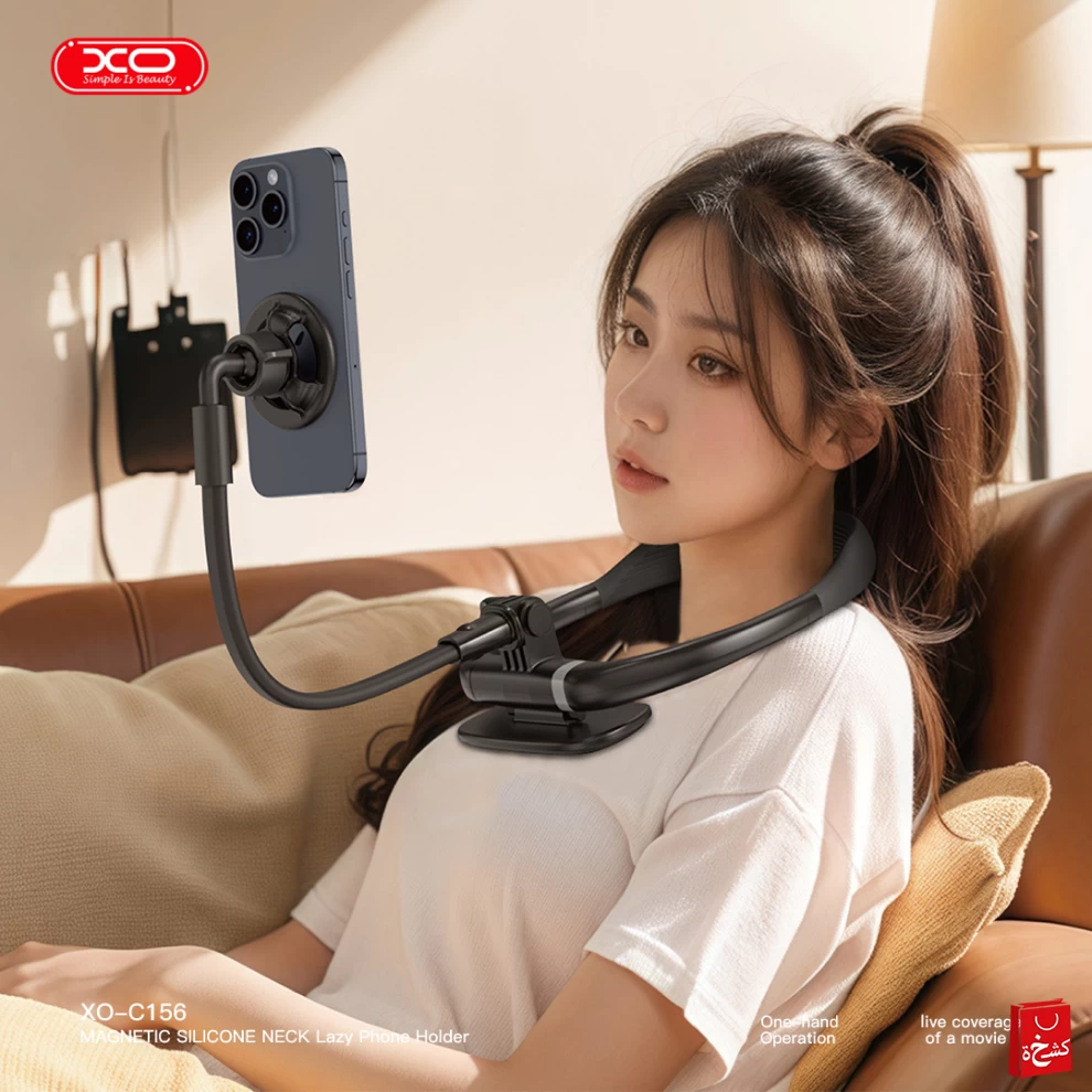 Enjoy total comfort and convenience while watching videos, making calls, or browsing—hands-free! This XO magnetic neck phone holder flexibly wraps around your neck, mounts on surfaces, or stands on a desk. Ideal for multitasking at home or on the go.