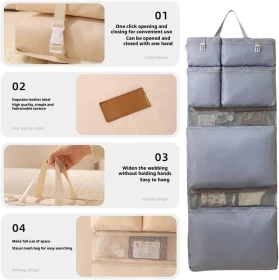 • Compartments: 3-tier shelves + zippered bottom pocket + top hook