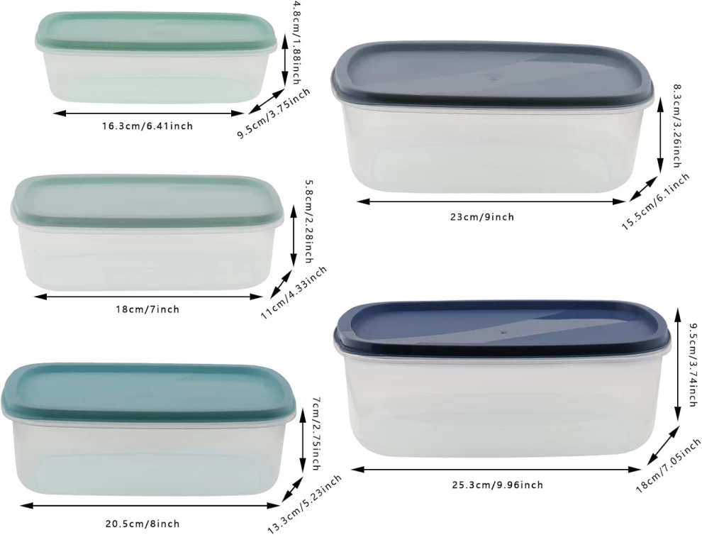 • Sizes: 5 different capacities (approx. 200ml to 2500ml)