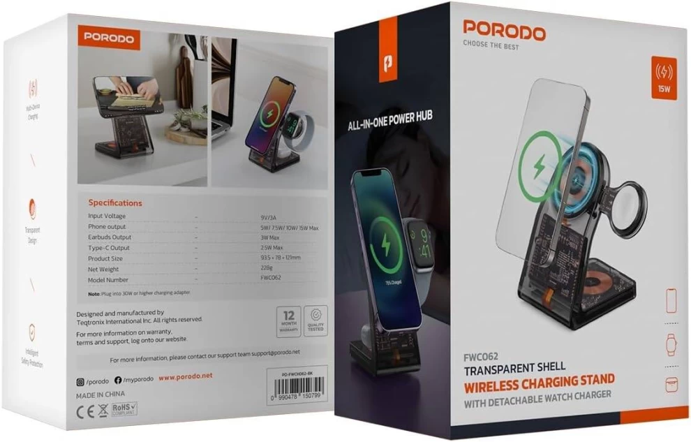 • 🔋 1 × Porodo Transparent Shell Wireless Charging Stand