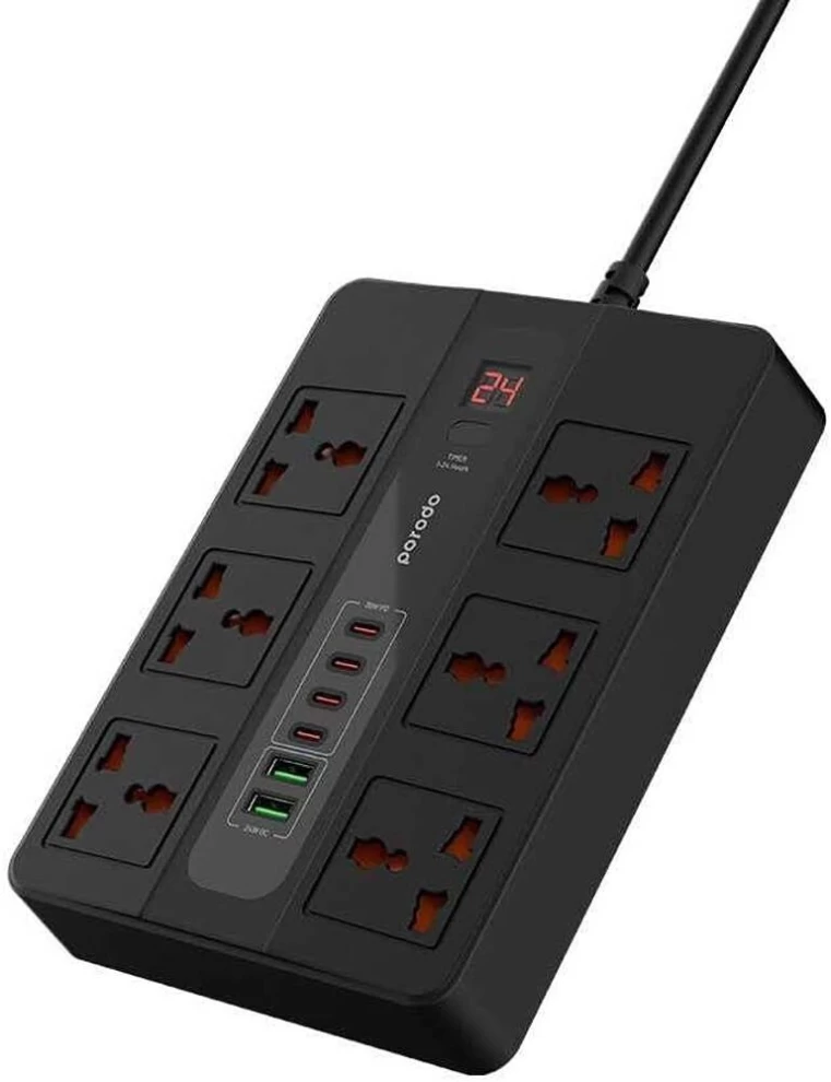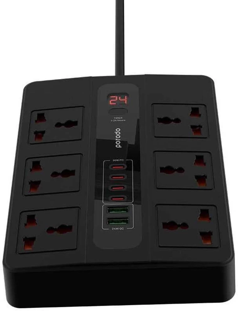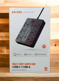 Upgrade your workspace with the Porodo Multi-Port Super HUB, designed to power all your devices at once. With 4 USB-C and 2 USB-A ports, this all-in-one charging hub delivers fast, safe, and efficient power for home, office, or studio use. The 3-meter cable ensures flexible placement, keeping your setup organized and clutter-free.