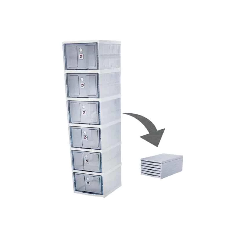 Keep your shoes and small items neatly organized with this 6-Shelf Shoe Rack featuring collapsible plastic storage bins with lids. Perfect for home, office, or closet use, it combines durability, versatility, and space-saving design. Ideal for shoes, toys, accessories, or miscellaneous items — everything stays tidy and accessible.