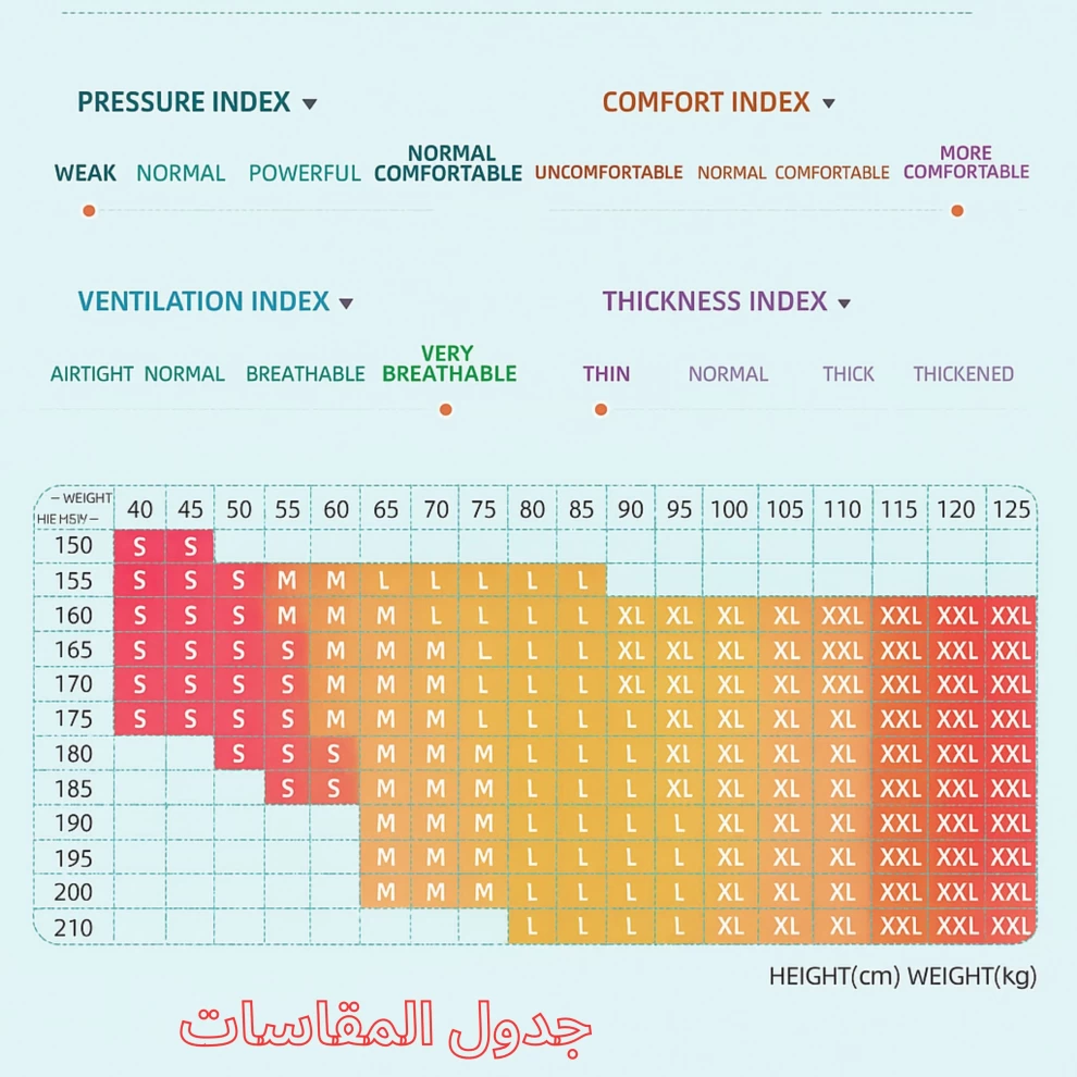 Each size is carefully designed to provide the perfect balance between pressure, comfort, ventilation, and thickness, ensuring the best fit for your body type.