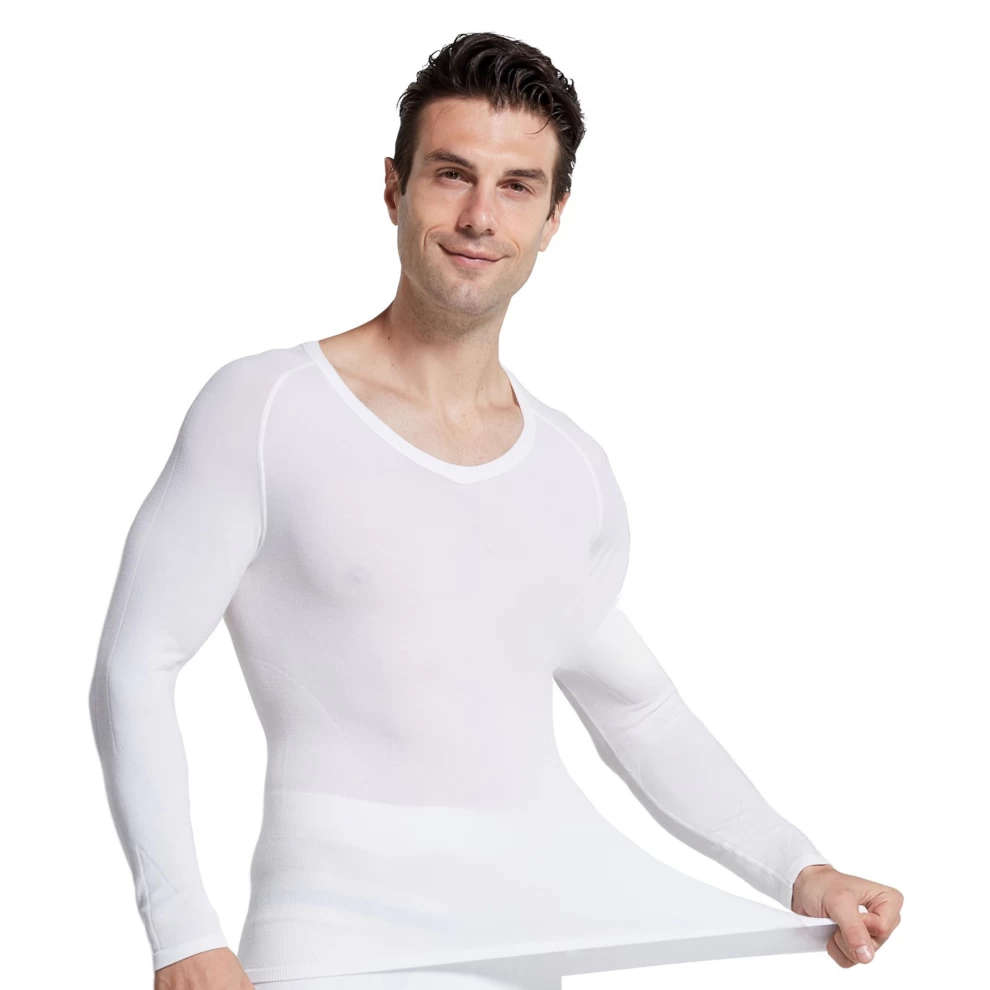 Men Thermal Compression Slimming Warm Undershirt-White017