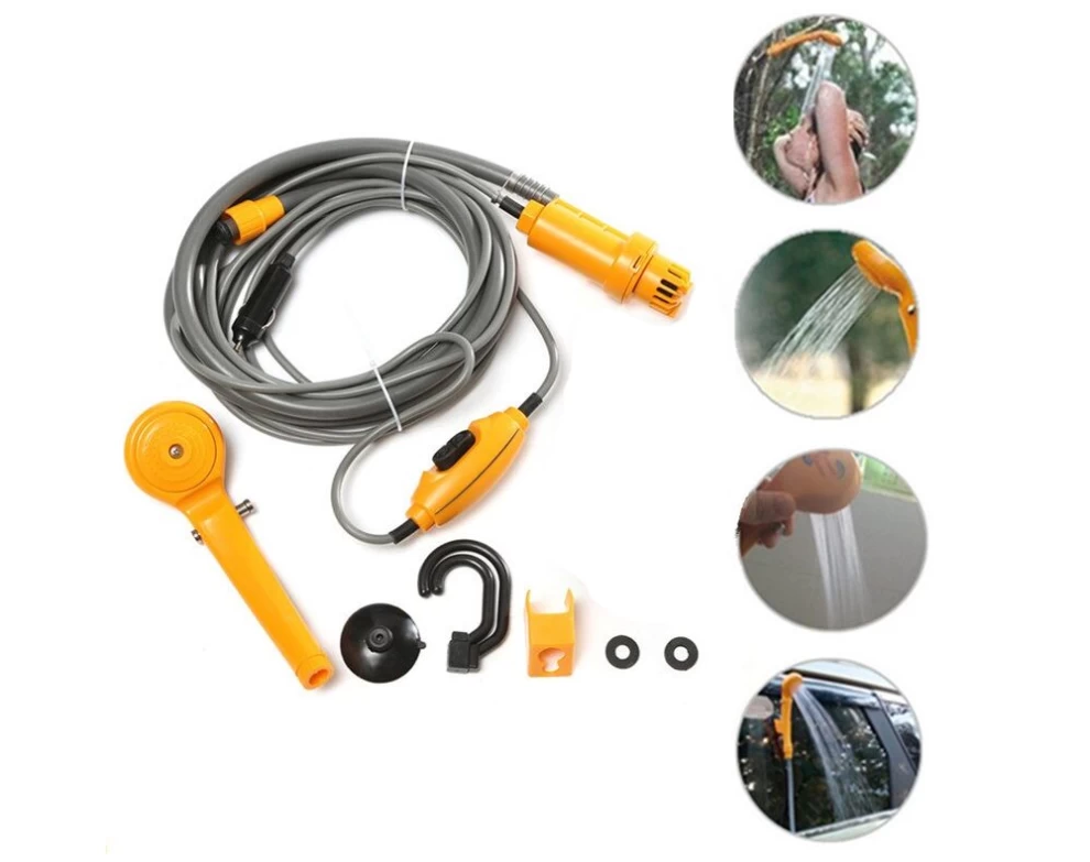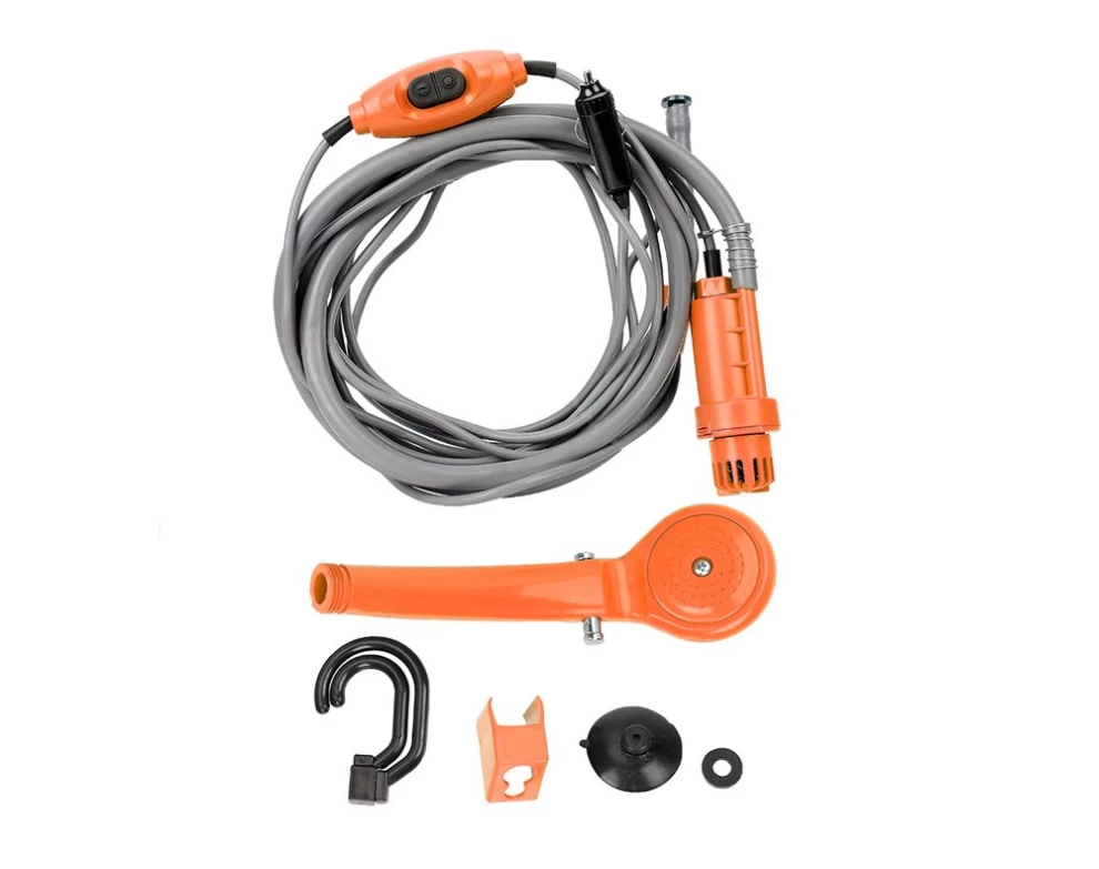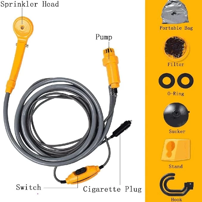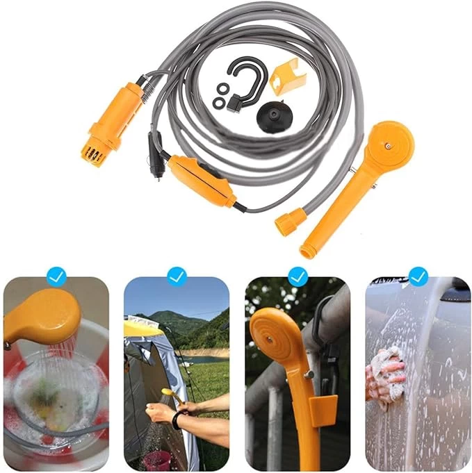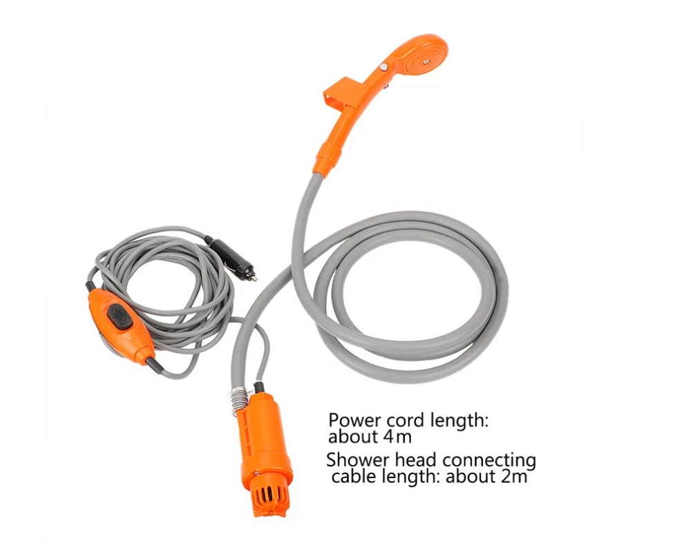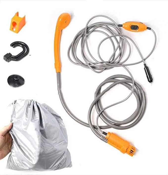 Stay fresh and clean anywhere with the Portable 12V Camping Shower — perfect for outdoor adventures, beach trips, or camping. Designed for easy setup and strong water pressure, this rechargeable shower pump connects to your car’s 12V outlet or portable power bank, turning any water source into a mini outdoor shower.