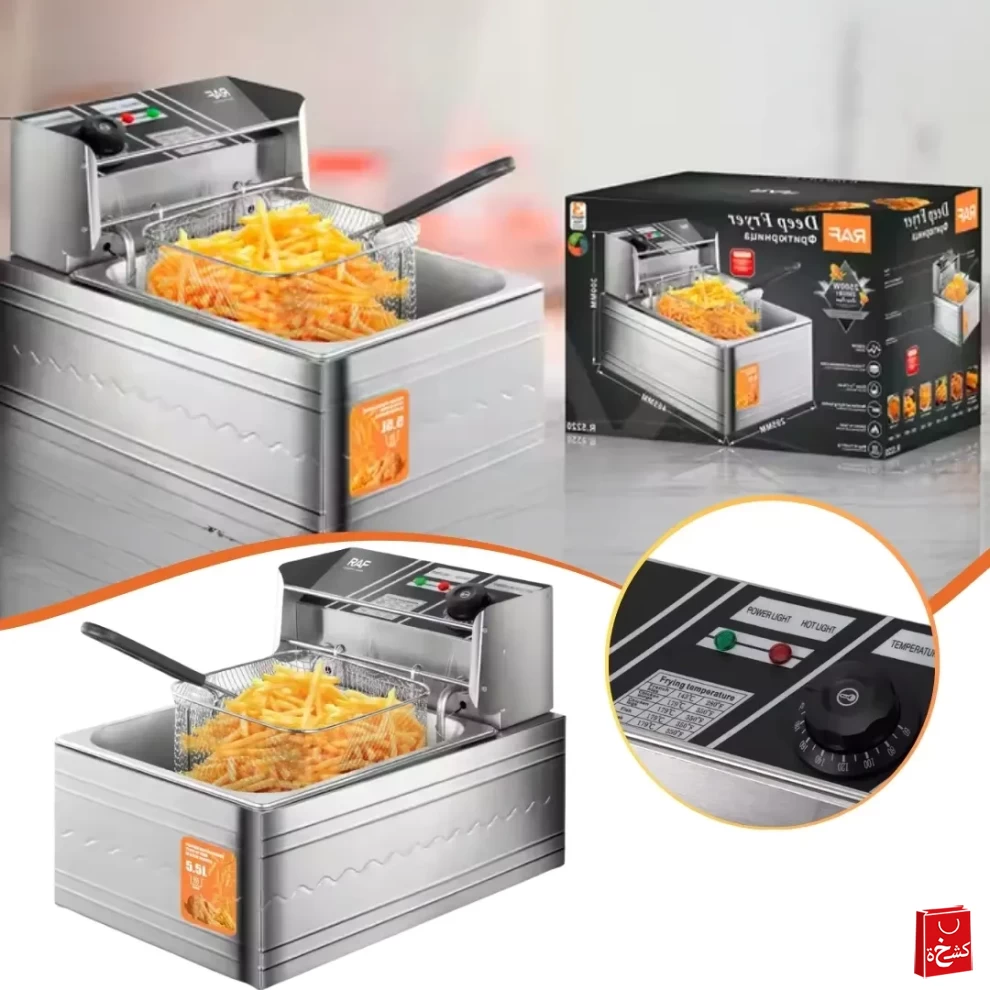 Enjoy perfectly fried meals at home with the RAF Deep Fryer 5.5L 2500W. Designed for fast, even cooking, this deep fryer is ideal for fries, chicken, fish, and more. With a large 5.5L capacity, adjustable temperature, and safety features, it’s perfect for families and gatherings.