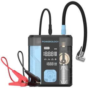 Be prepared for any road situation with the Powerology 3-in-1 Jump Starter & Tire Inflator, an essential tool every driver should have. It combines a powerful jump starter, a high-pressure tire inflator, and a portable power bank—all in one compact device.