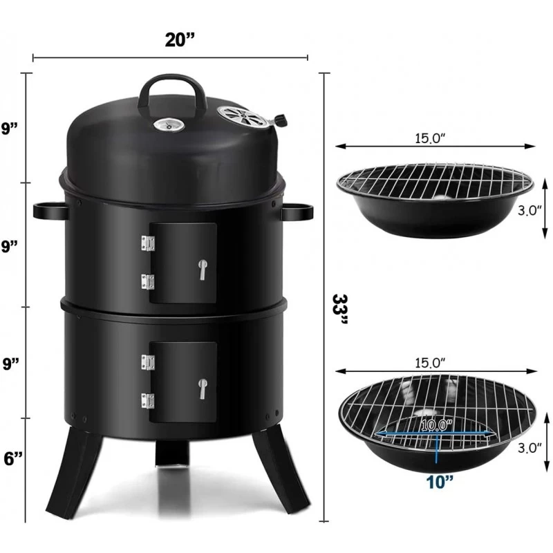 Enjoy the perfect outdoor cooking experience with the 3-in-1 BBQ Smoker, designed to grill, smoke, and roast all in one durable unit. Ideal for family gatherings, picnics, and backyard BBQ parties, this smoker delivers rich smoky flavors with precise heat control.