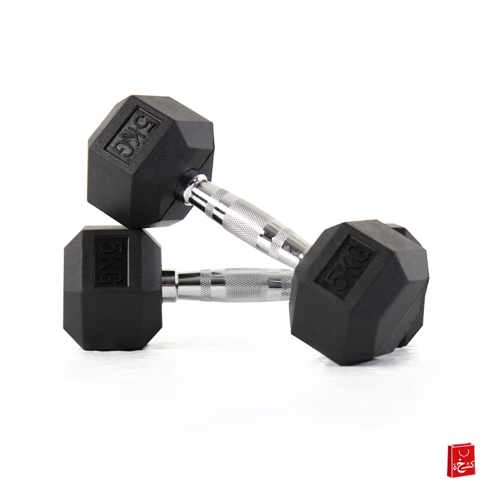 • 1 × 5KG Rubber Hex Dumbbell (Black)