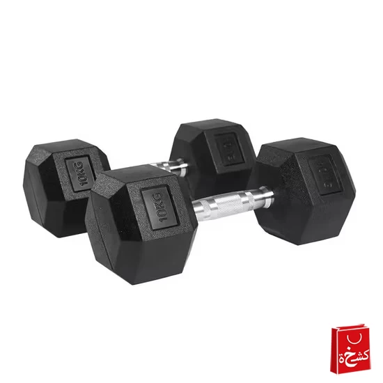 • 1 × 10KG Rubber Hex Dumbbell (Black)