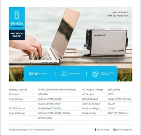 Stay powered anywhere with the Powerology 32000mAh 150W Mini Power Station. Compact yet powerful, this portable energy solution delivers reliable AC and DC power for your essential devices, making it ideal for travel, camping, emergency backup, and outdoor activities.