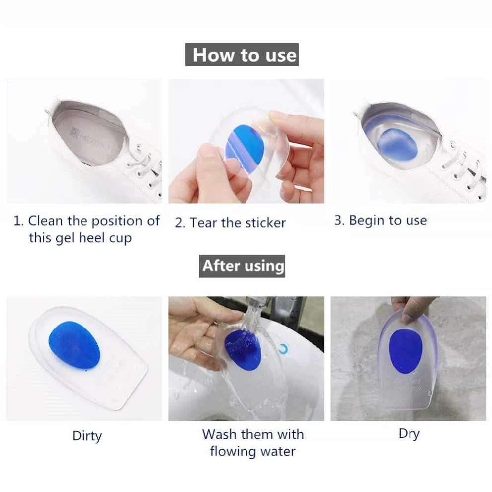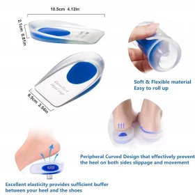 Relieve foot discomfort with these Silicone Gel Heel Pad Shoe Inserts, specially designed to reduce pressure and absorb shock. Ideal for people suffering from plantar fasciitis, heel spurs, sore heels, and Achilles pain, these inserts provide all-day comfort and protection.