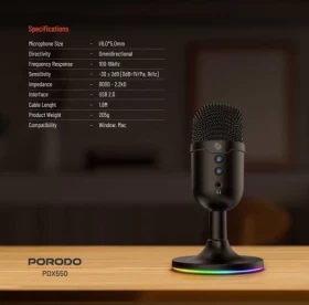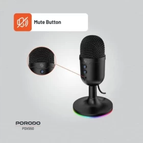 Porodo Gaming Omni-Directional USB Microphone – Clear Voice for Streaming & Gaming
