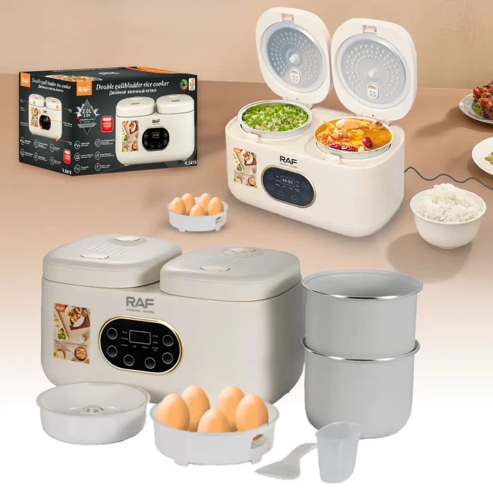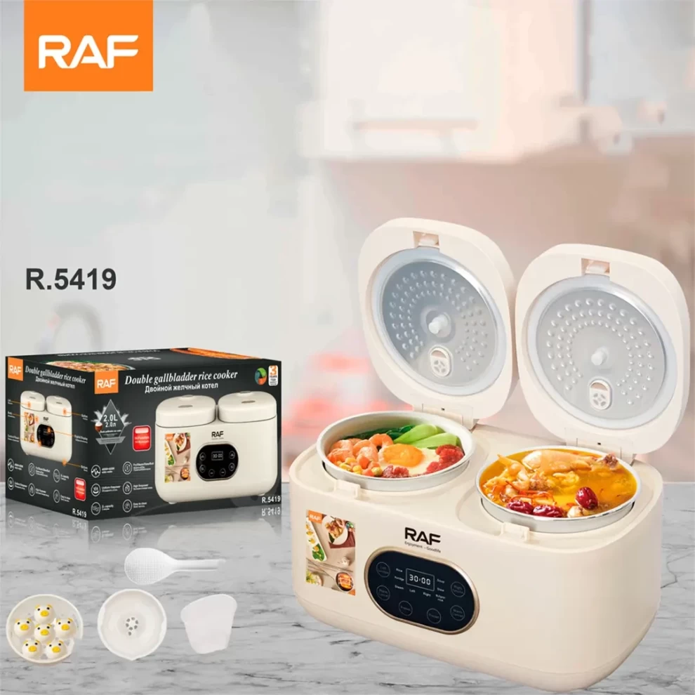 Cook perfect, fluffy rice every time with the RAF R.5419 Double Electric Rice Cooker. With a generous 4-liter capacity and efficient 300W power, this cooker is ideal for families and gatherings. Its double-layer design ensures even heating and consistent results for rice, steaming, and warming.