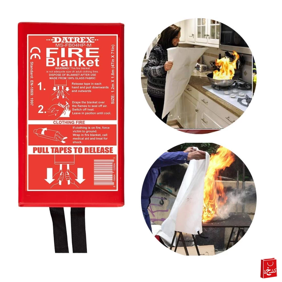 • 🚫 Do not throw the blanket directly at flames.