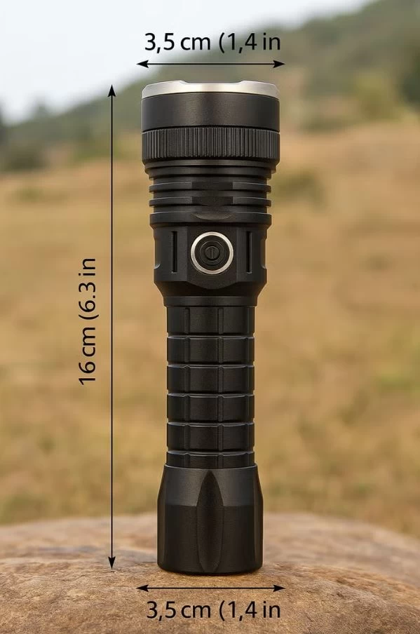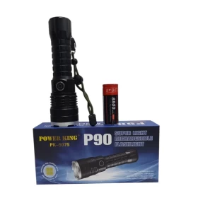 Stay prepared for any situation with the P90 LED Flashlight, a powerful handheld torch designed for camping, outdoor adventures, emergency lighting, and everyday use. Built with a durable aluminum body and high-performance LED technology, this flashlight delivers bright 1200-lumen illumination with a beam distance up to 1000 meters. With battery-powered operation, multiple brightness modes, and efficient heat dissipation, it is a reliable lighting tool for both indoor and outdoor environments.
