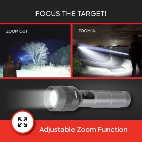 • 🔍 Focus: Adjustable zoom (spot/flood)