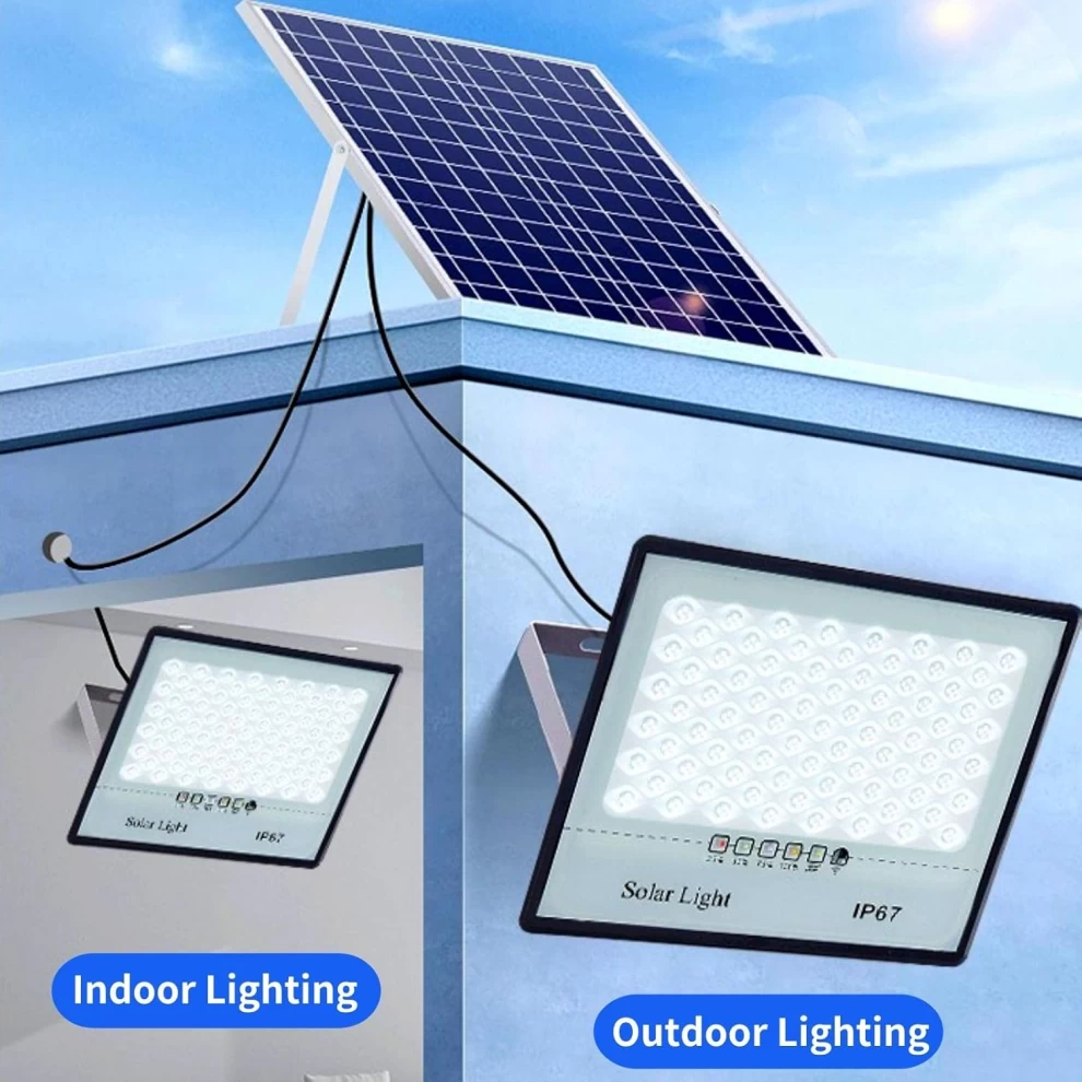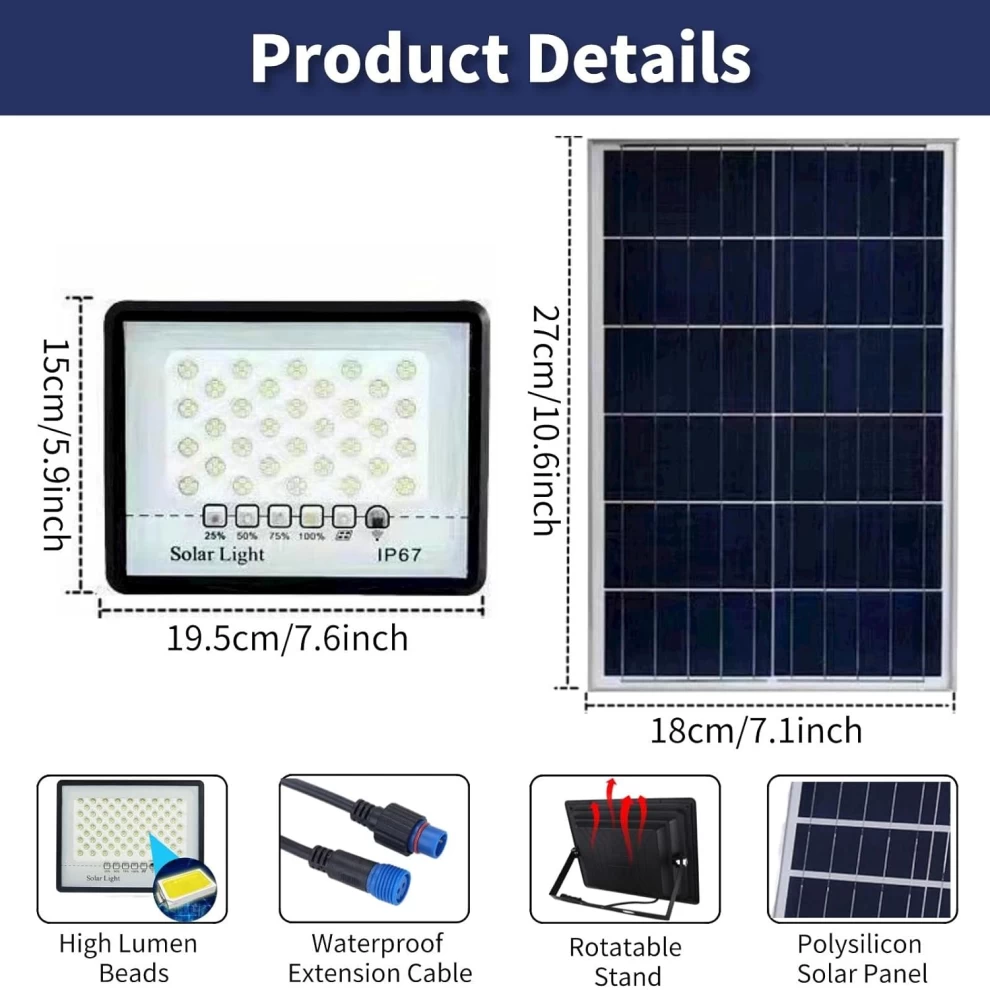 Light up large outdoor areas with the 200W Solar Floodlight, designed for powerful illumination, energy efficiency, and all-weather durability. Equipped with a high-performance solar panel, remote control, and waterproof design, it’s perfect for gardens, streets, walls, parking areas, and security lighting—no wiring required!