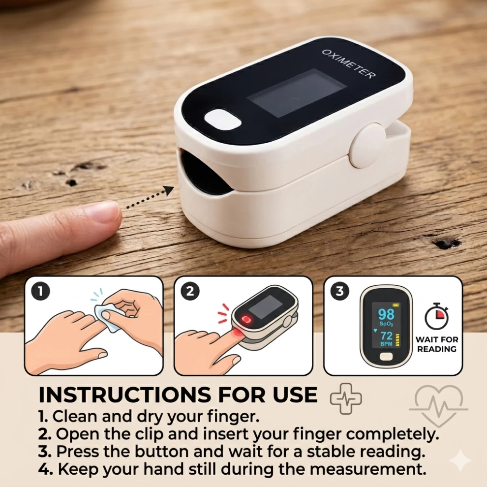 • 🩺 Function: SpO₂ & pulse rate measurement