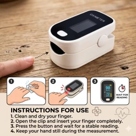 Monitor your health anytime with the Pulse Oximeter (White)—a compact, easy-to-use device that measures blood oxygen saturation (SpO₂) and pulse rate in seconds. Ideal for home use, sports, travel, and wellness tracking, it delivers quick, reliable readings with a clear digital display.
