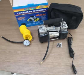 The Portable Dual Cylinder 12V Car Air Compressor – 150 PSI is a powerful and fast air pump designed for inflating car tires, bikes, motorcycles, and sports equipment. With dual-cylinder high-pressure performance, it delivers quick inflation, durability, and reliable roadside assistance, perfect for drivers, off-road enthusiasts, and emergency use.